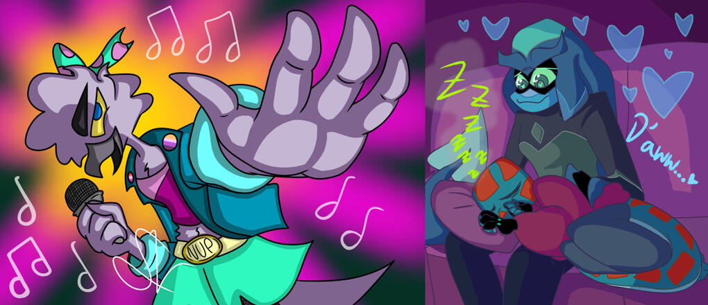 Strix's style is mostly a "cartoony" style. He mostly does character design so his work will be higher skilled in drawing characters. He mainly draws animals and anthropomorphic characters but will expand to human-based creatures.